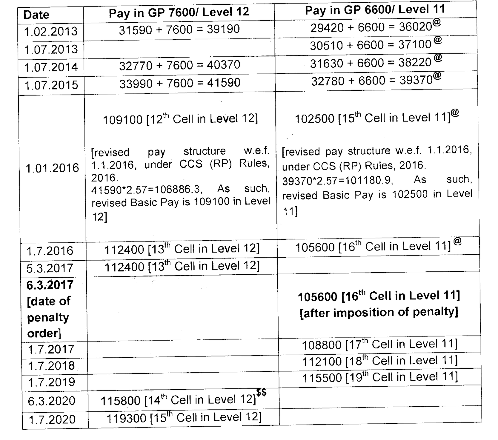 (ii)                  Pay     w.e.f.  1.07.2018    to30.06.2019 will be Rs. 50500 [5thCell of Level 7][due toimposition of penalty]